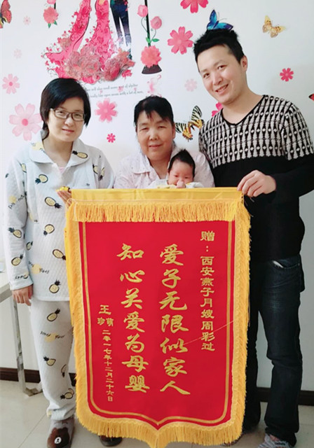 周阿姨在得知寶寶要出生時(shí),以最快的速度趕到寶寶和寶媽身邊,全身心投入到自己的工作中,為寶媽做乳房護(hù)理、子宮護(hù)理、搭配合適的月子餐,給寶寶洗澡撫觸、觀察并記錄黃疸情況、記錄寶寶每天的奶量體溫等等。周阿姨的一舉一動(dòng)客戶都看在眼里,特別是周阿姨的專業(yè)和關(guān)愛(ài),為了感謝周阿姨的悉心護(hù)理,特送錦旗以表感激之情!