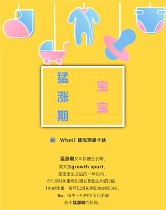 猛漲期又叫快速生長期,英文是growth spurt,寶寶出生之后的一年以內,6個月時體重可以增長到出生時的2倍,1歲時體重一般可以增長到出生時的3倍,