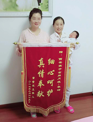 月嫂李婷護理寶寶非常的專業,對產婦的照顧也無微不至。在月子中非常用心的制作月子餐。注意營養搭配和變換花樣。我們非常慶幸能夠請到這樣有責任心的月嫂。客戶給月嫂李婷的感謝信。