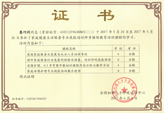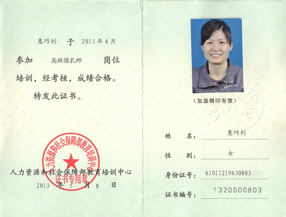 專業技能培訓師師資                                 催乳師師資                                      高級催乳師證