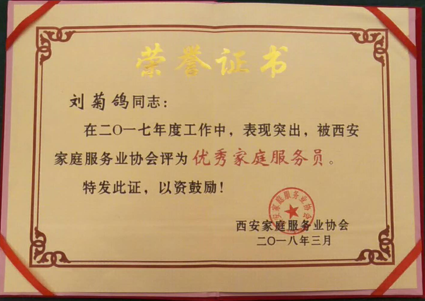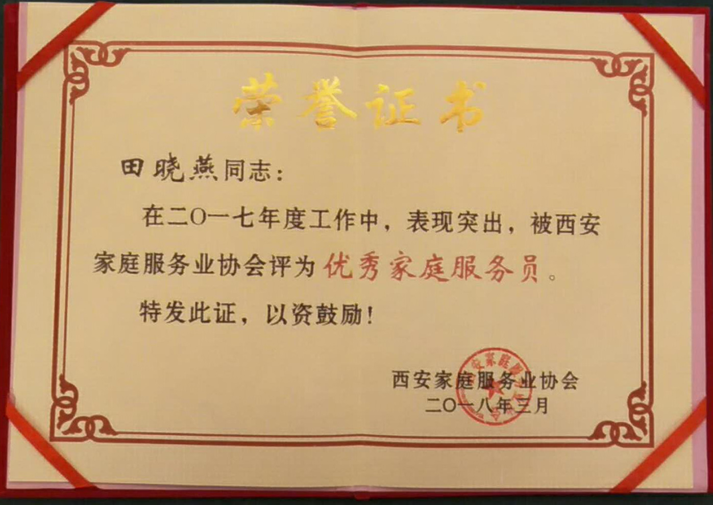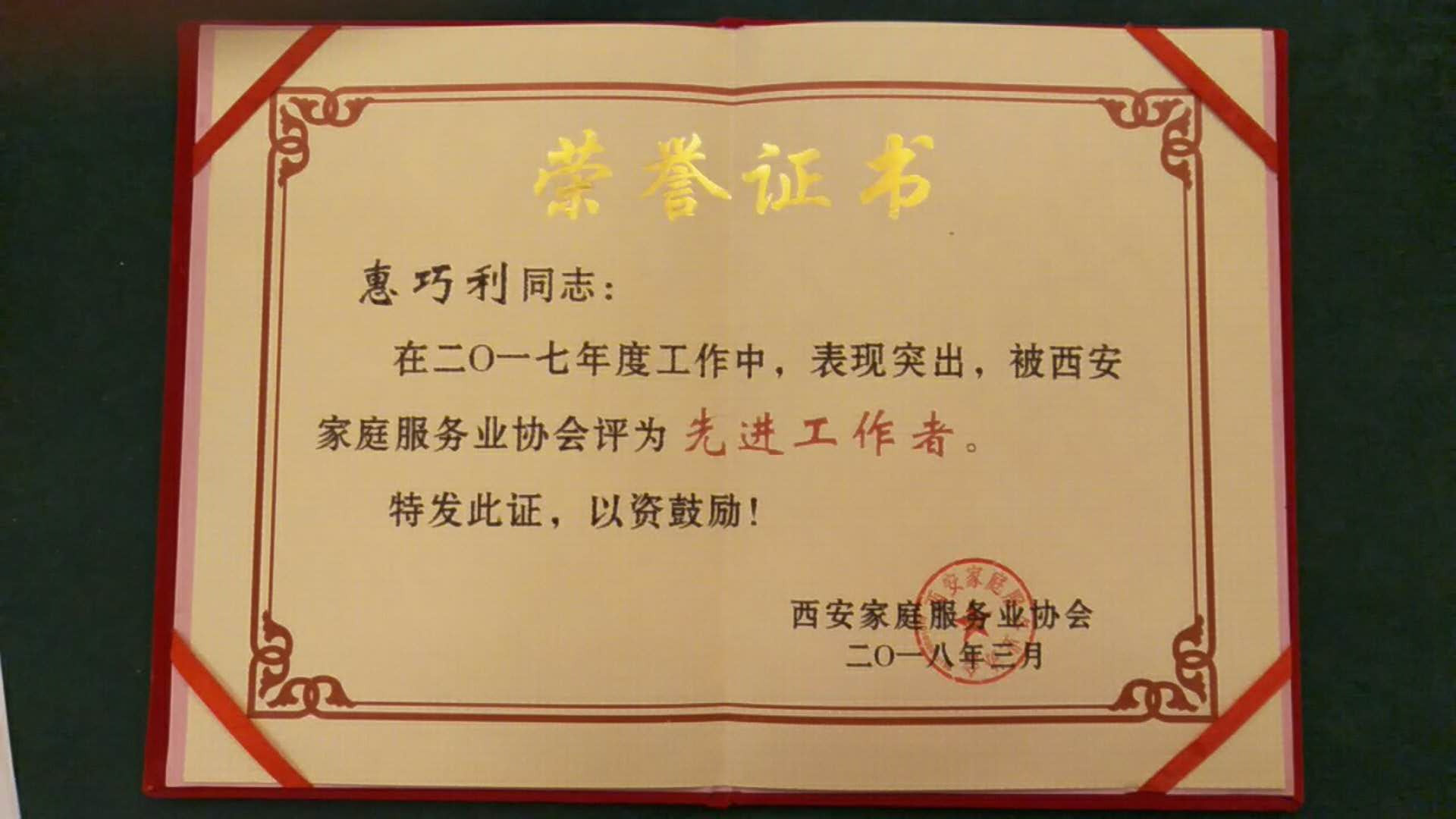 恭喜月嫂郭線線,張俊芳,呂學英,孫小利,周彩過,田曉艷,蘇曉群,吳鮮維,李答榮,黃文秀,王雪茹,高偉俠,劉菊鴿,朱盈盈,胡維娃眾姐妹,獲得西安市2017年家庭服務業(yè)協(xié)會優(yōu)秀家庭服務員稱號。