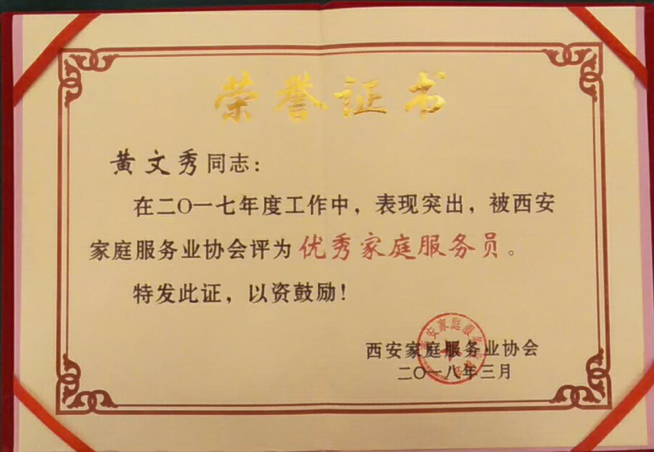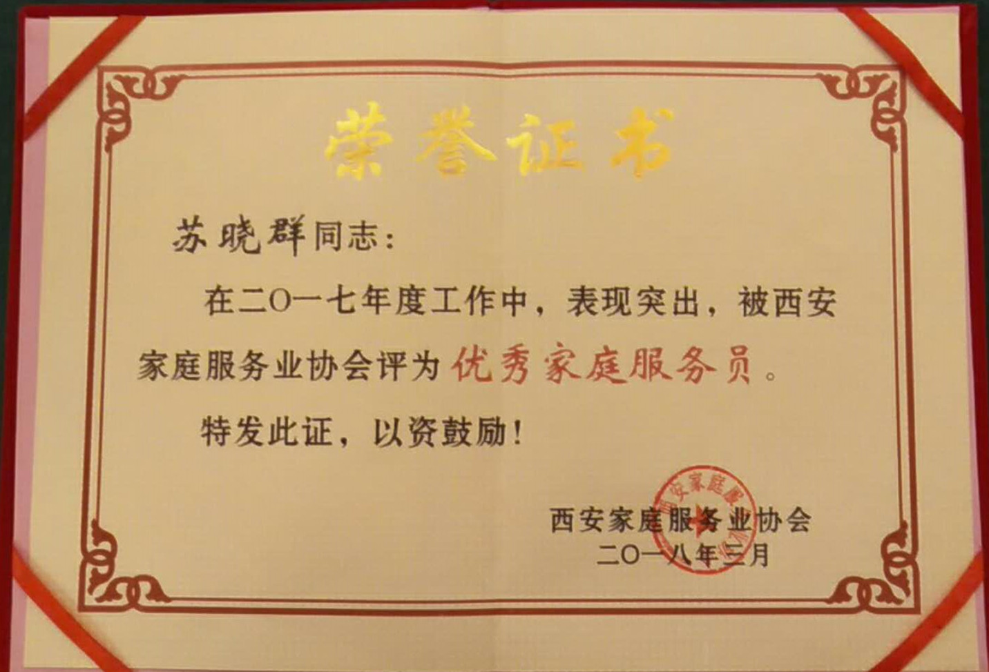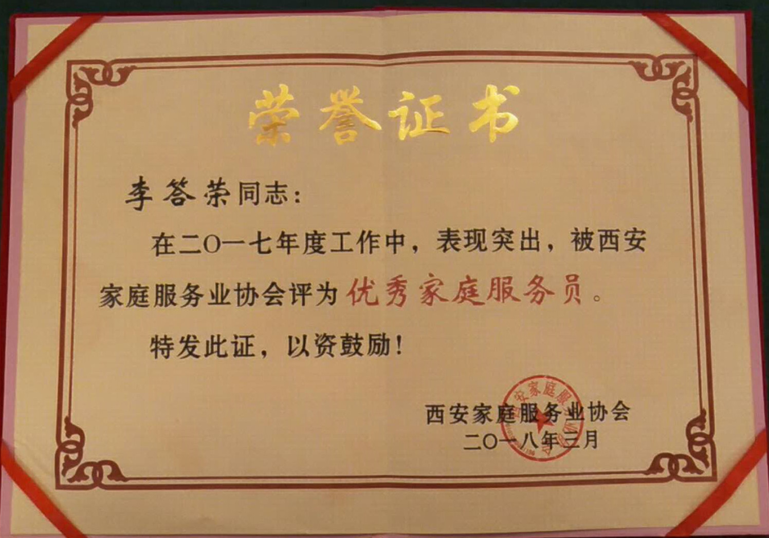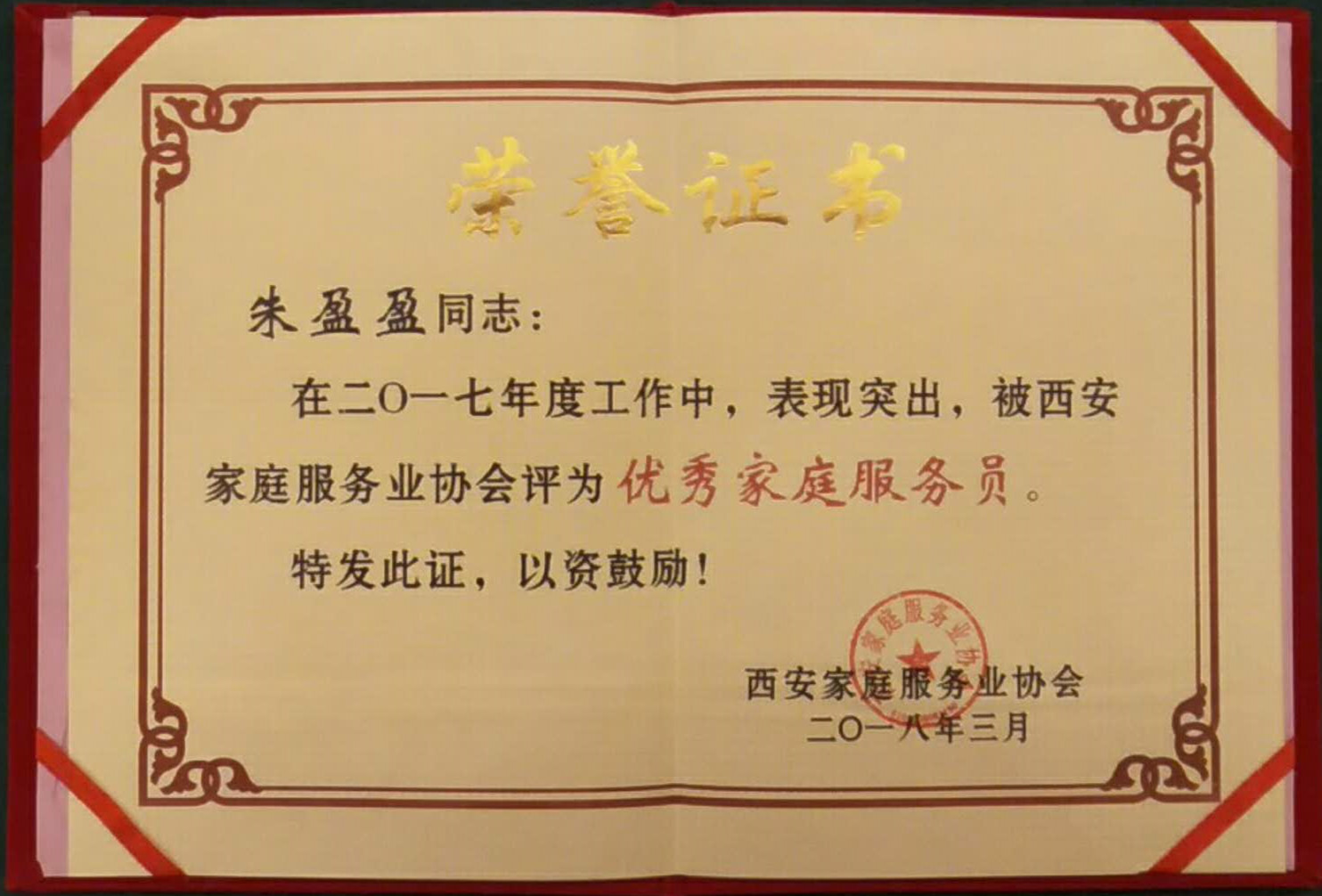 恭喜月嫂郭線線,張俊芳,呂學英,孫小利,周彩過,田曉艷,蘇曉群,吳鮮維,李答榮,黃文秀,王雪茹,高偉俠,劉菊鴿,朱盈盈,胡維娃眾姐妹,獲得西安市2017年家庭服務業(yè)協(xié)會優(yōu)秀家庭服務員稱號。