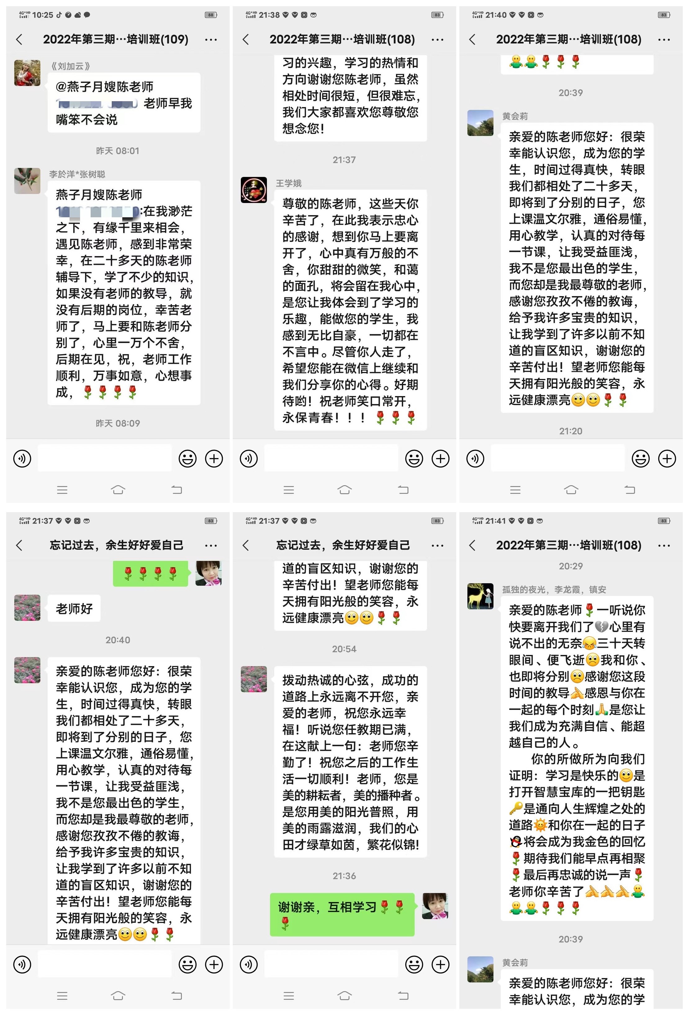 字里行間流露出學員們對老師依依不舍