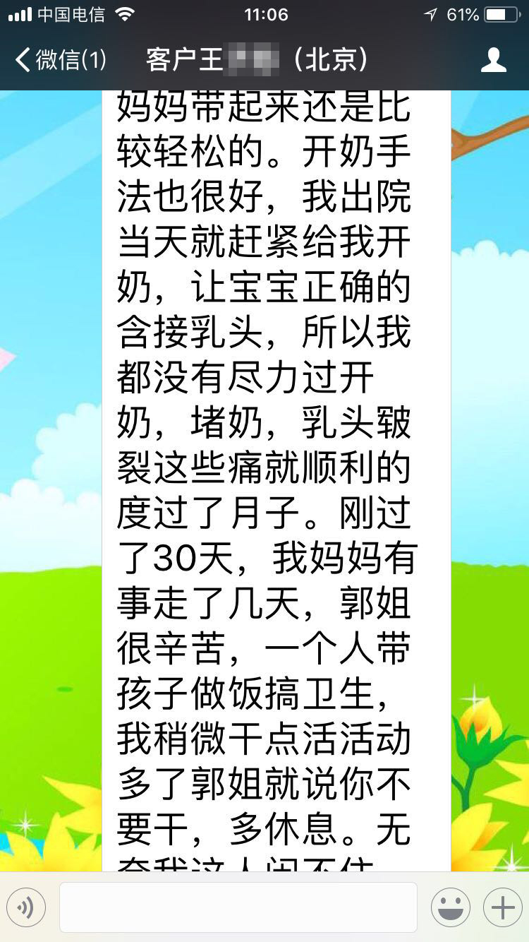 距離郭姐走已經有幾天了。一直想著給你寫反饋。苦于育兒嫂沒來,沒時間。趁著晚上起來吸奶寫一點。