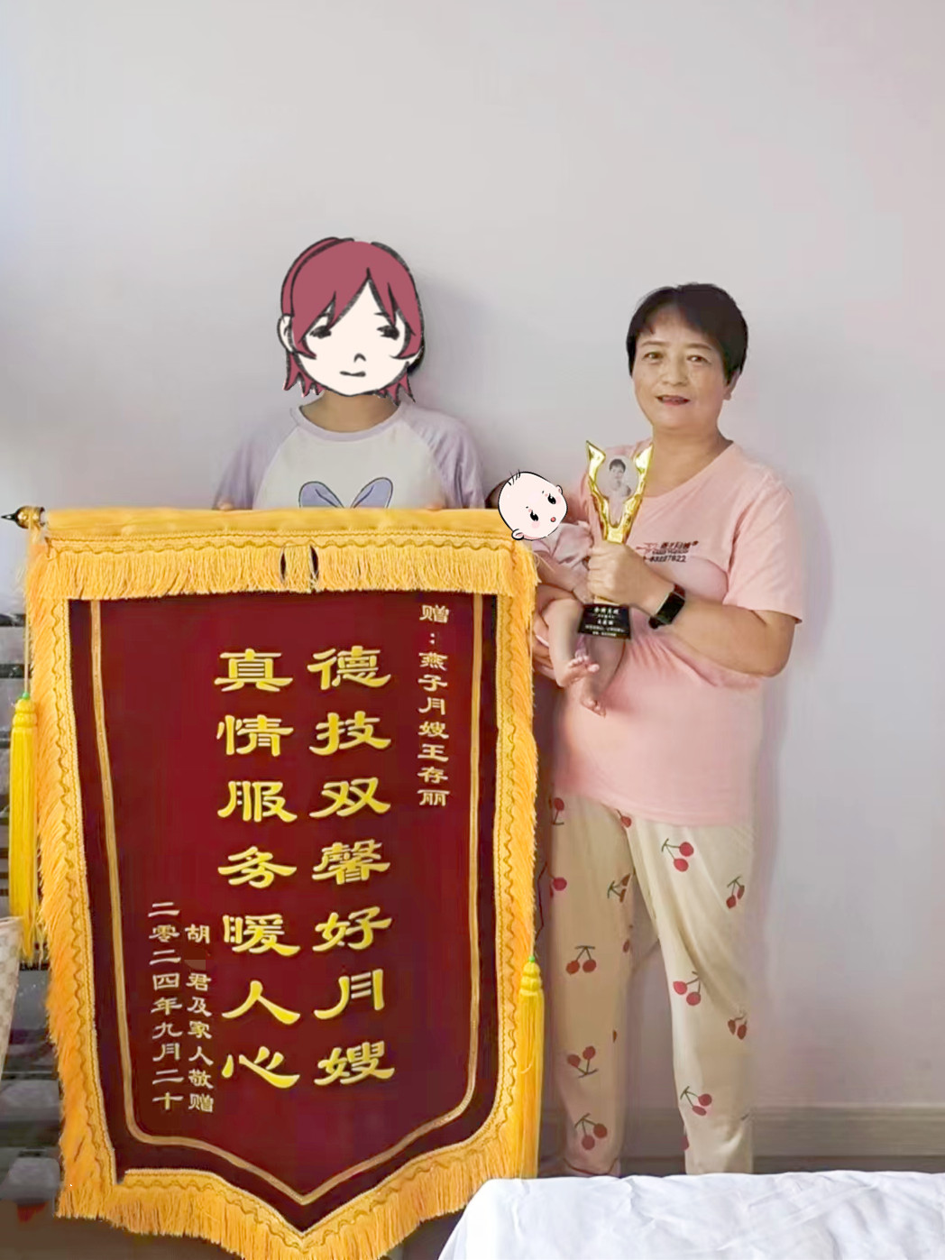 特別要提到的是,當我們的月嫂王存利阿姨即將結束在貴府的服務之際,您精心定制的錦旗,不僅是對王阿姨辛勤付出的高度認可,更是對我們燕子月嫂團隊專業精神的極大鼓舞。那面錦旗上熠熠生輝的文字,不僅彰顯了您的感激之情,更如同一盞明燈,照亮了王阿姨和我們所有工作人員的心田。
