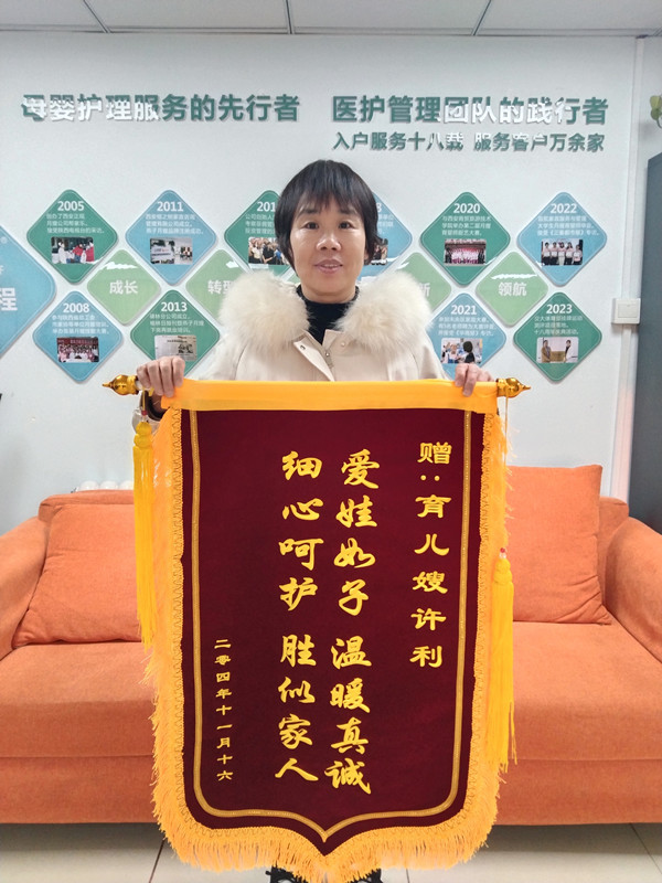 許利育兒嫂愛心多,客戶贈錦旗傳佳話,西安燕子月嫂共榮耀