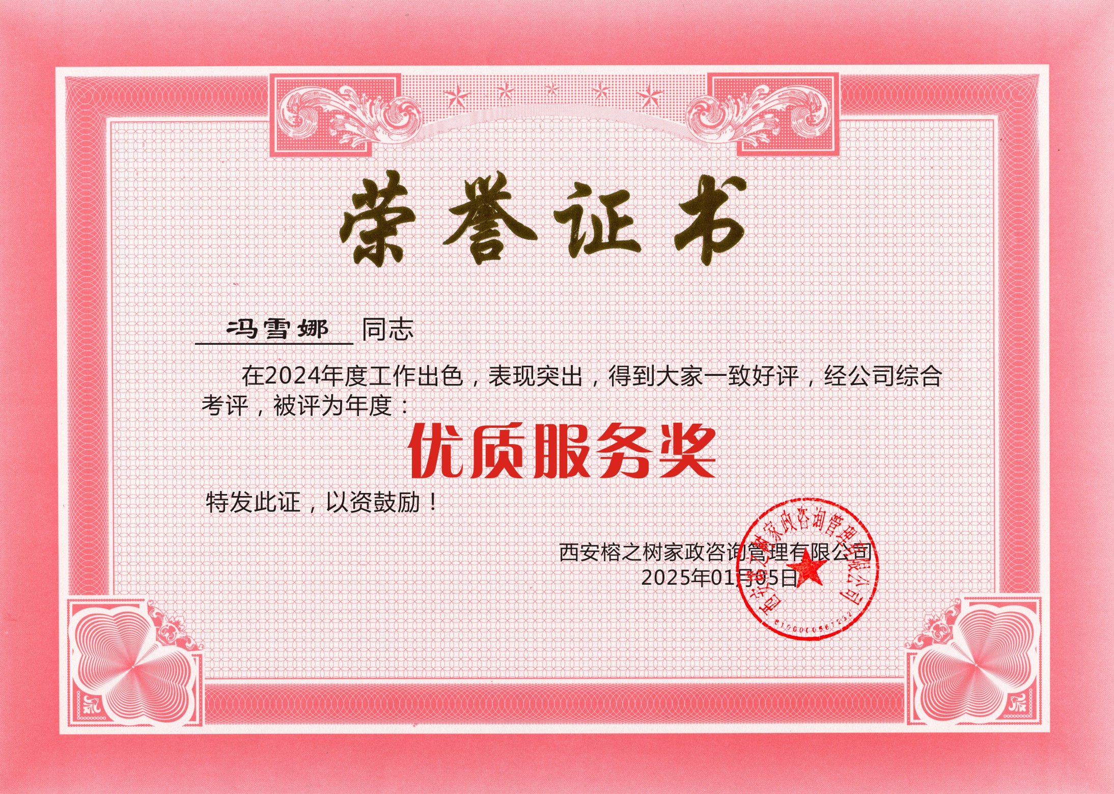 西安燕子月嫂超話 2024優(yōu)質服務獎