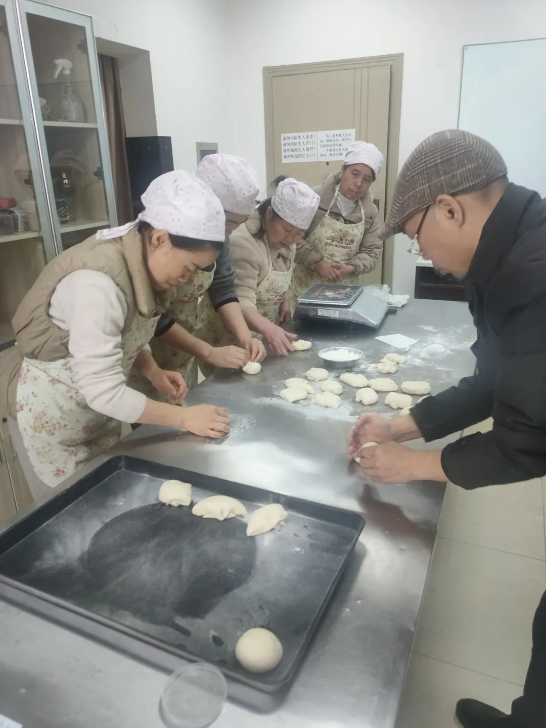 參與培訓的月嫂育嬰師們熱情高漲,紛紛動手實踐,在操作過程中積極向華老師請教。大家圍在操作臺前,認真地揉著面團,嘗試將學到的技巧運用到實際制作中。