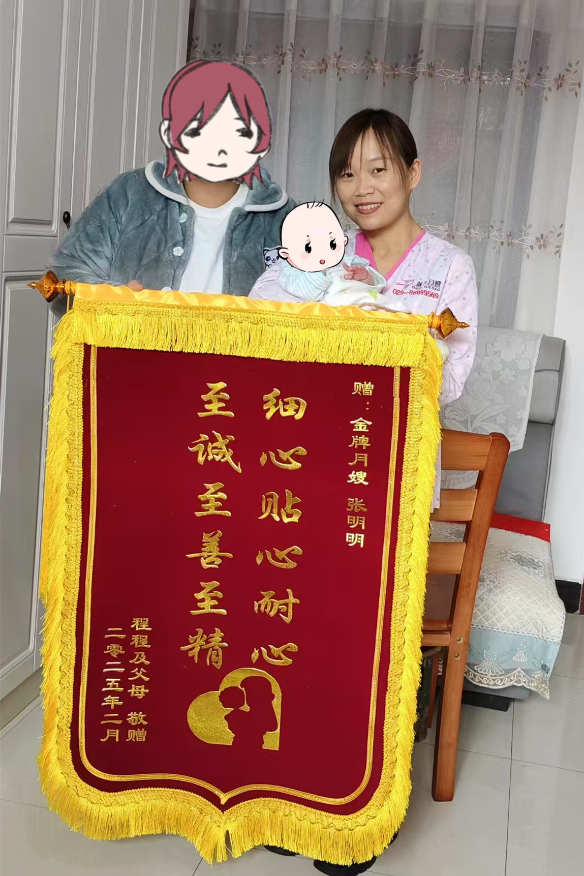 您贈送的錦旗,不僅是對張明明個(gè)人的褒獎(jiǎng),更是對燕子月嫂公司服務(wù)質(zhì)量的肯定。這讓我們更加堅(jiān)定了為客戶提供優(yōu)質(zhì)、專業(yè)、貼心服務(wù)的決心。我們將以此為動力,持續(xù)加強(qiáng)對月嫂團(tuán)隊(duì)的培訓(xùn)與管理,不斷提升服務(wù)水平,不負(fù)您的信任與期望。