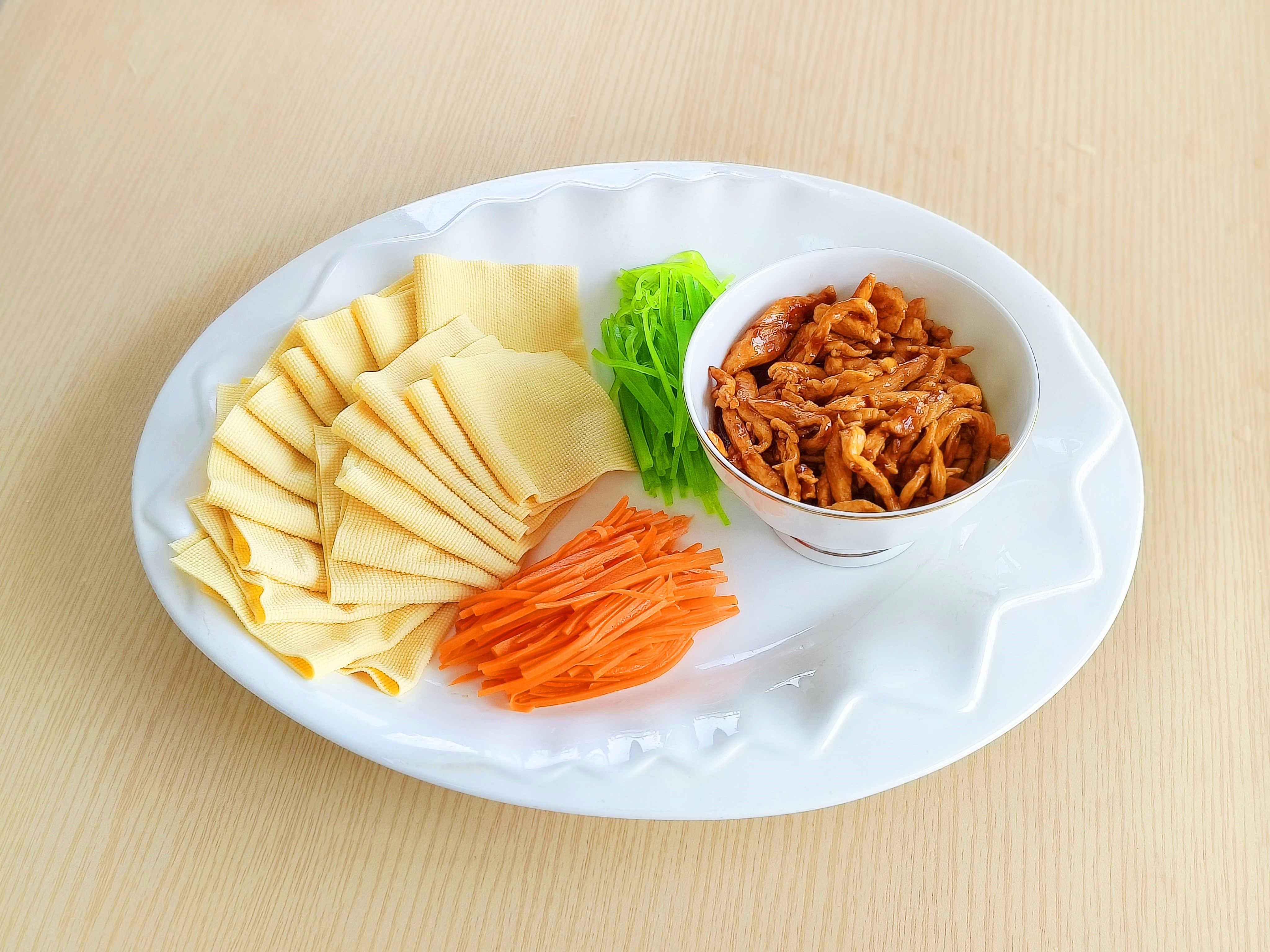 8·食用時(shí),用豆皮卷上蔬菜和雞絲,一口下去超級(jí)滿足!