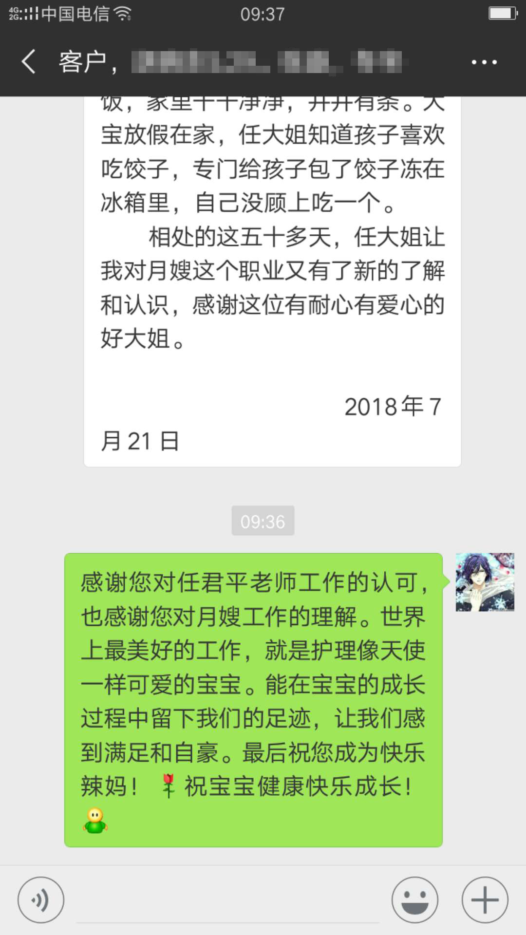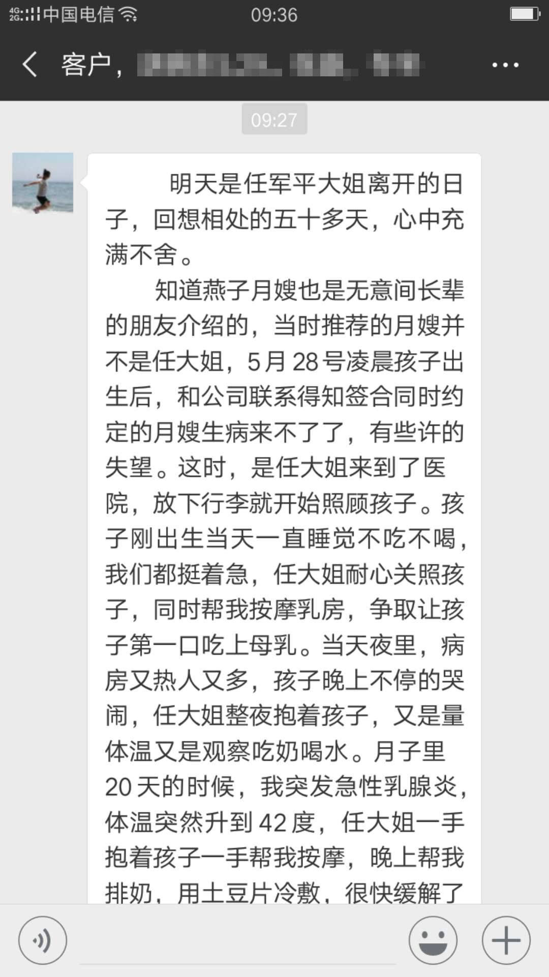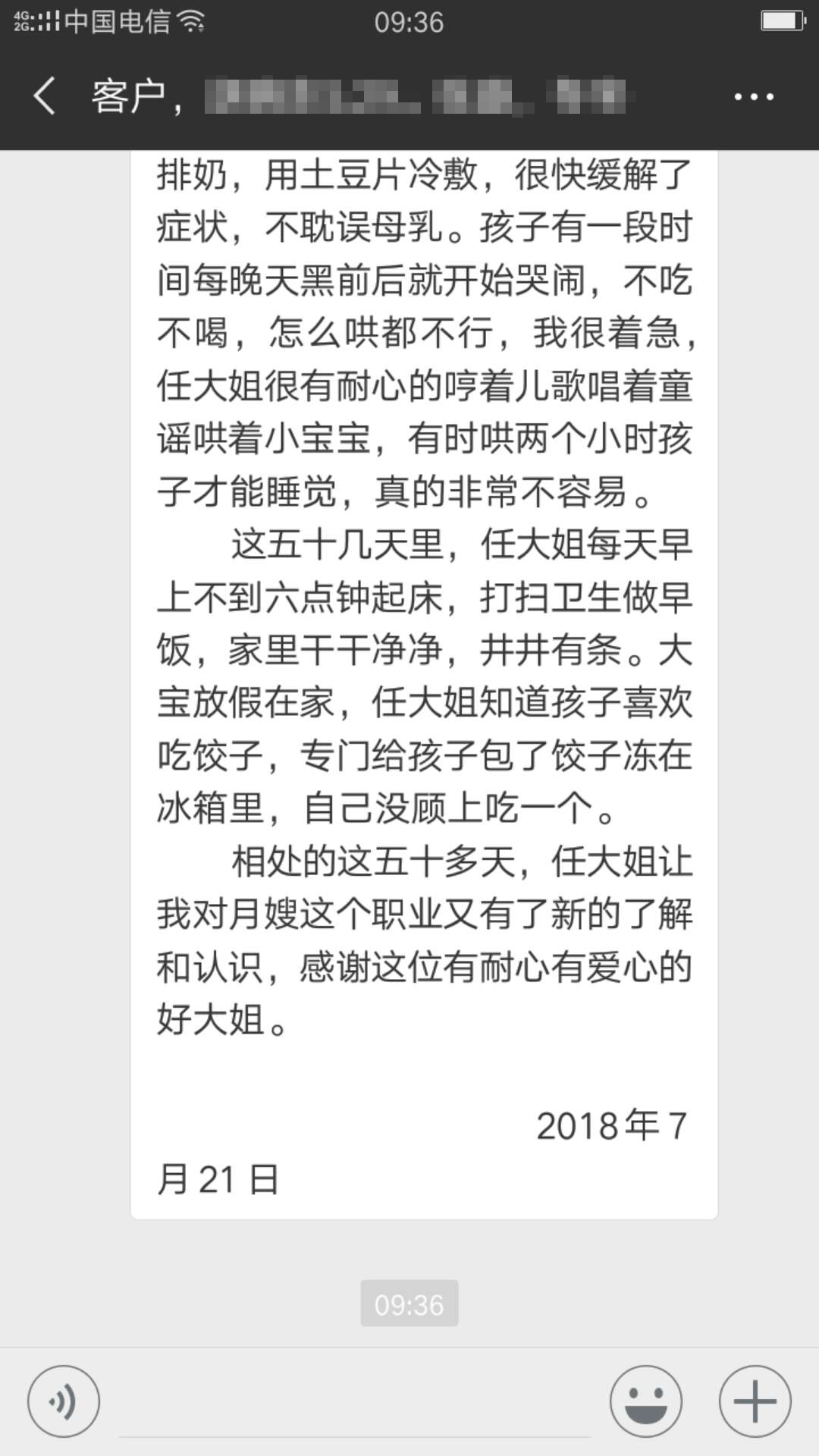 相處的這五十多天,任大姐讓我對月嫂這個職業又有了新的了解和認識,感謝這位有耐心有愛心的好大姐。