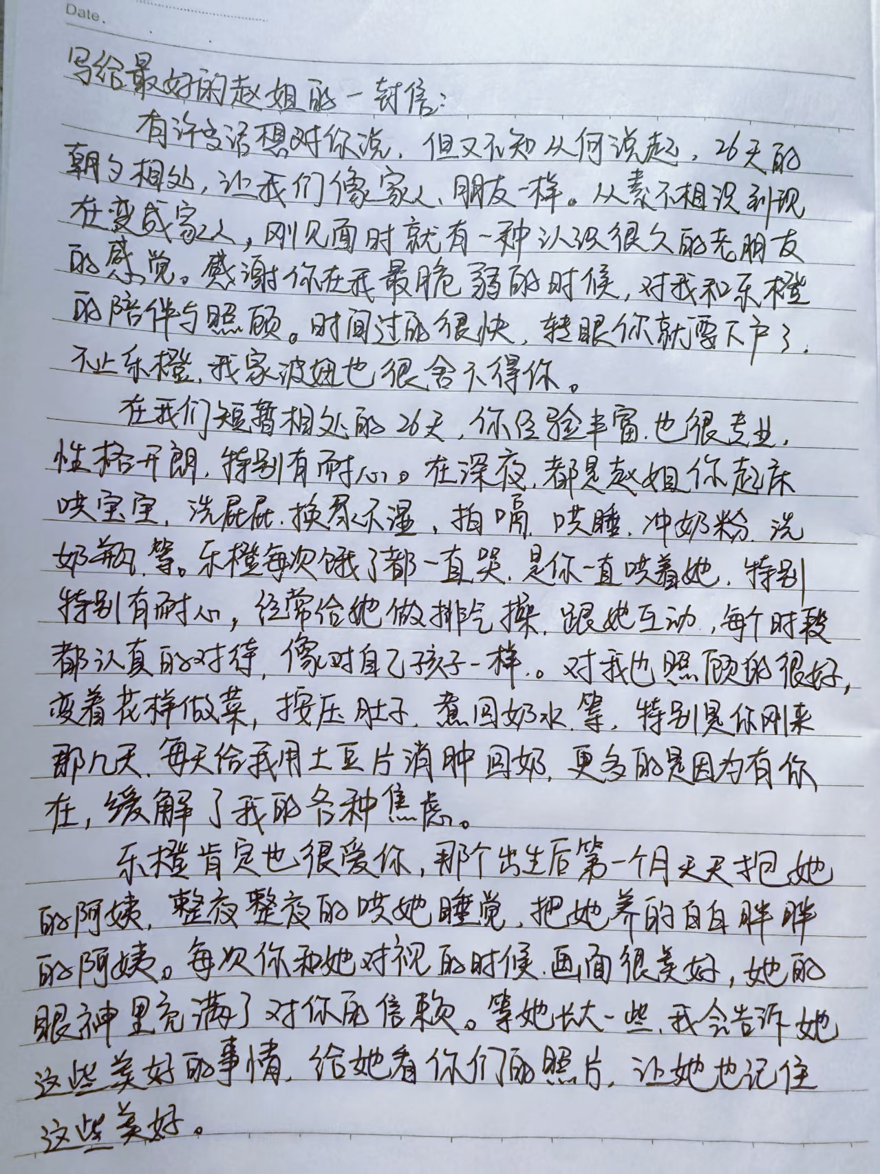 寫(xiě)給最好的#月嫂# 趙姐的一封信: