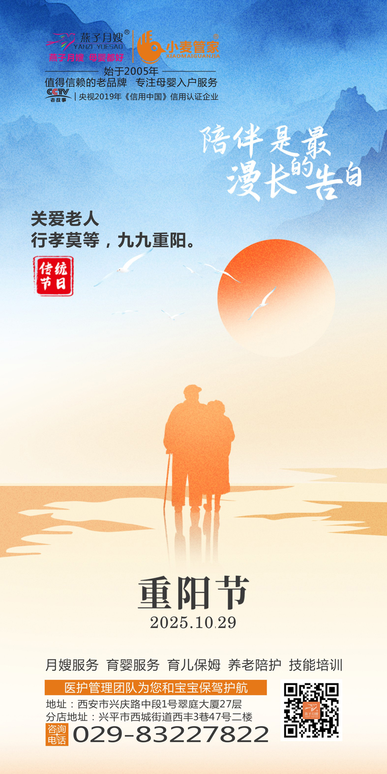九九重陽,登高望遠的不僅是山河秋色,更是每個家庭對未來的期盼。當新生命遇見傳統佳節,西安燕子月嫂以專業守護,讓愛與陪伴在代際間溫暖延續。