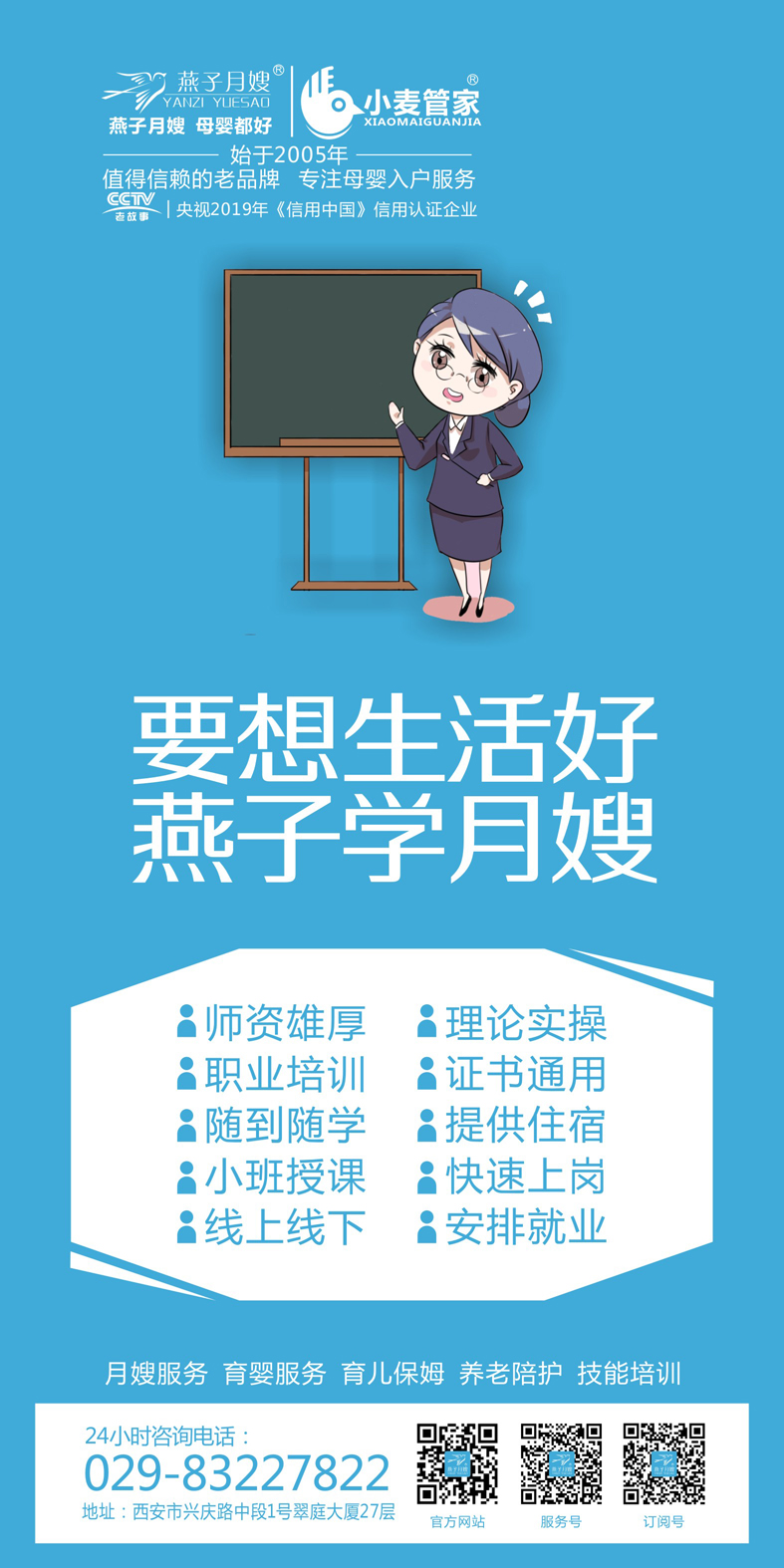 燕子月嫂,小麥管家,西安月嫂,西安育嬰師,家政培訓,月嫂公司,好月嫂,高新月嫂,交大月嫂,曲江月嫂,月嫂服務,產陪月嫂,西安育兒嫂,找育嬰師,找育兒嫂,育嬰師,早教育嬰師,家政保姆,育兒保姆,養老保姆,月嫂培訓,育嬰師培訓,育兒嫂培訓,湖北月嫂,陽新月嫂,興平月嫂,商洛月嫂,漢中月嫂,安康月嫂,延安月嫂,榆林月嫂
