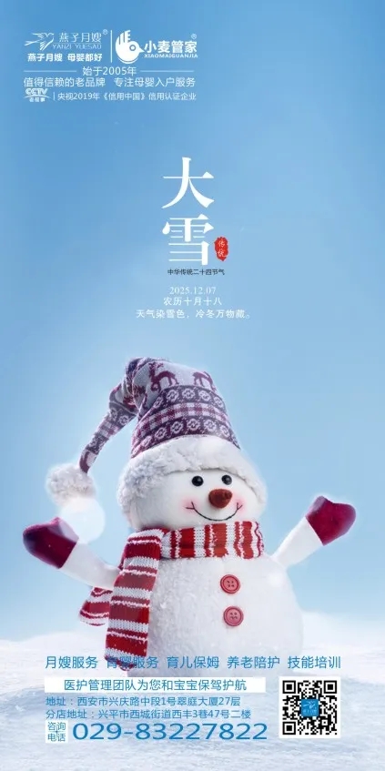 大雪至,萬物靜。雪花用最輕盈的姿態,完成天地間最盛大的降臨——恰如每一個新生命的到來,安靜,卻改變著整個世界。西安燕子月嫂,愿做那一片靜默的雪花,在這個銀裝素裹的節氣里,為您守護初生世界的寧靜與純粹。