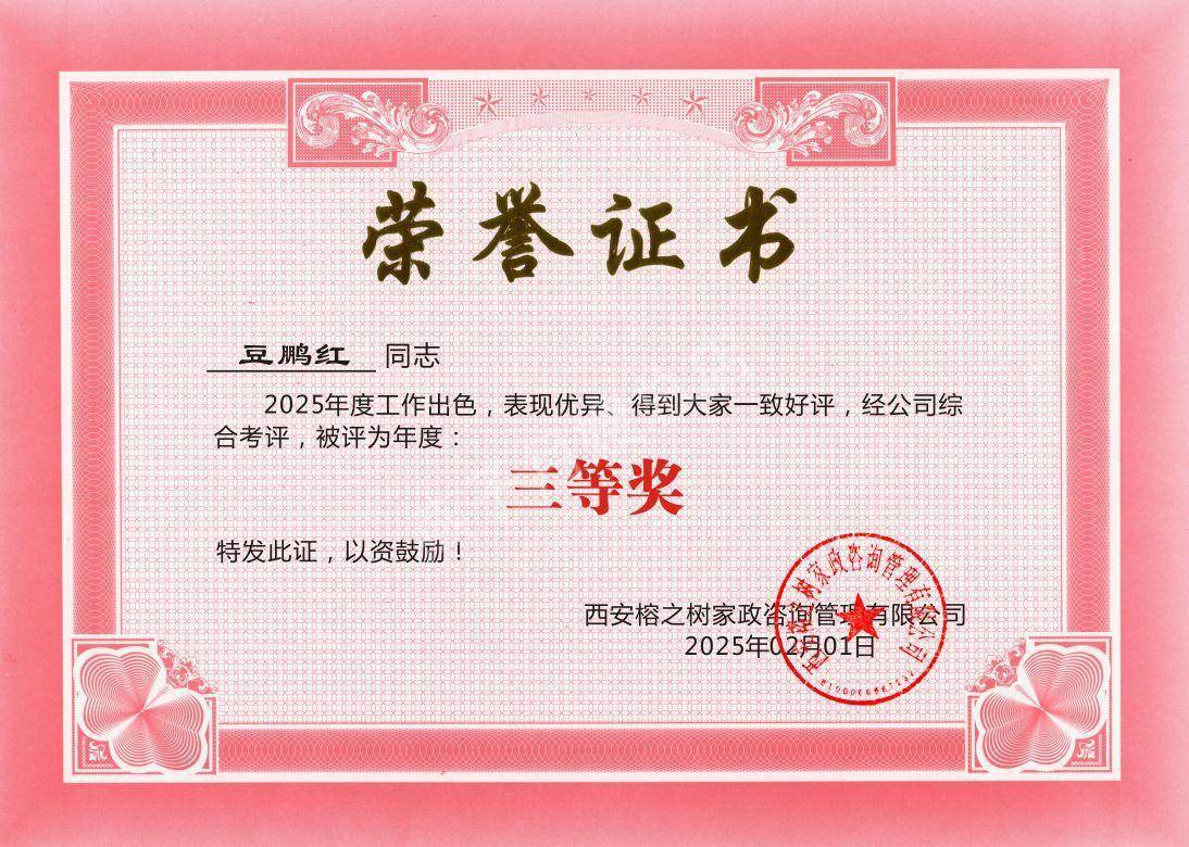 西安燕子月嫂2025年度表彰(三等獎)