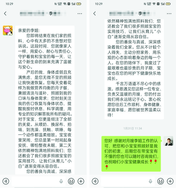 “這段時(shí)間,您就像家人一樣,用愛心、耐心與責(zé)任心,守護(hù)著我和寶寶的每一天。”