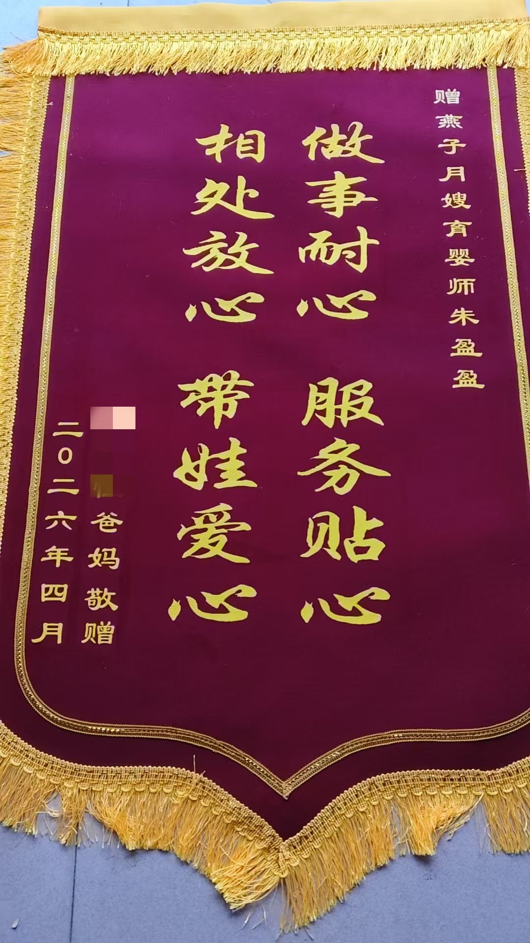 一面錦旗蘊含了,#育嬰師# 朱盈盈兩年的貼心守護!