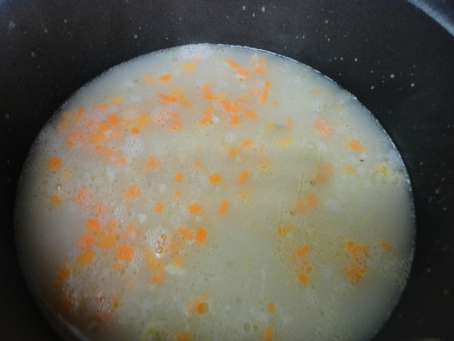 首先把胡蘿卜丁放入鍋中進行煮燉,一直煮到變軟為止。