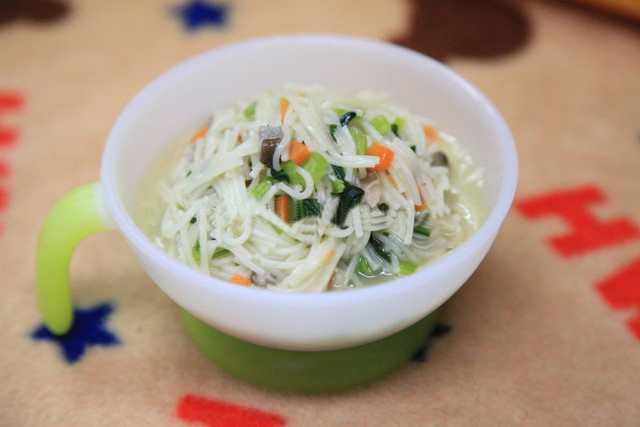 “愛心輔食”香菇雞湯龍須面簡單完成咯!~~
