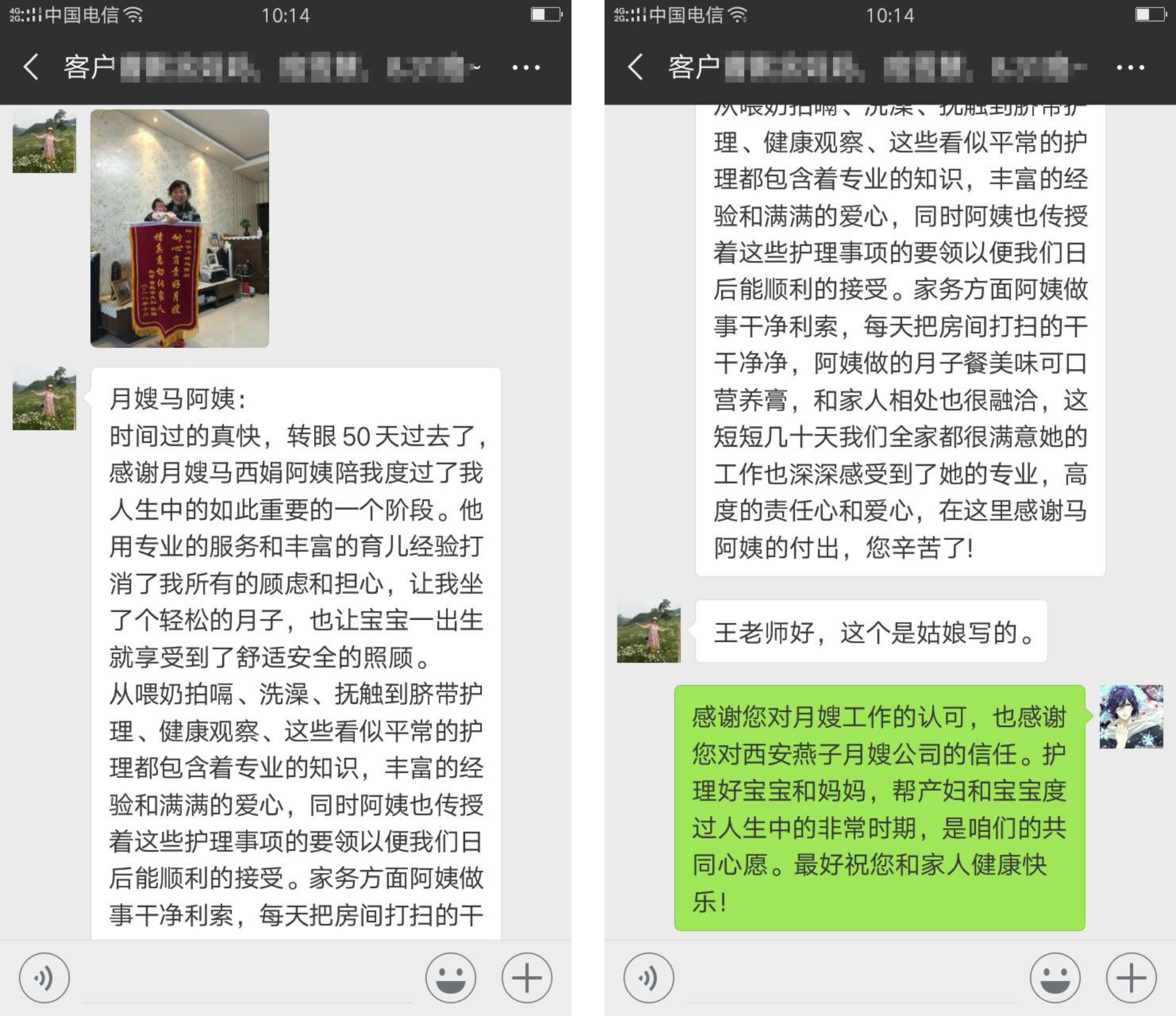 愛心滿滿金牌月嫂馬西娟的感謝信