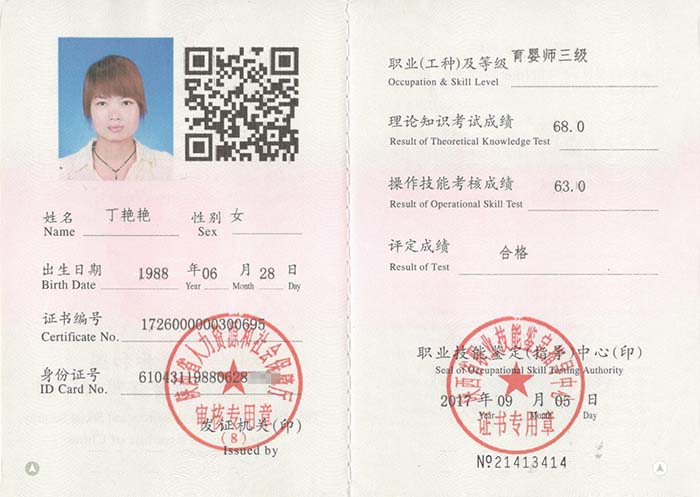 小兒推拿證                              畢業證                            高級育嬰師證                      公共營養師證