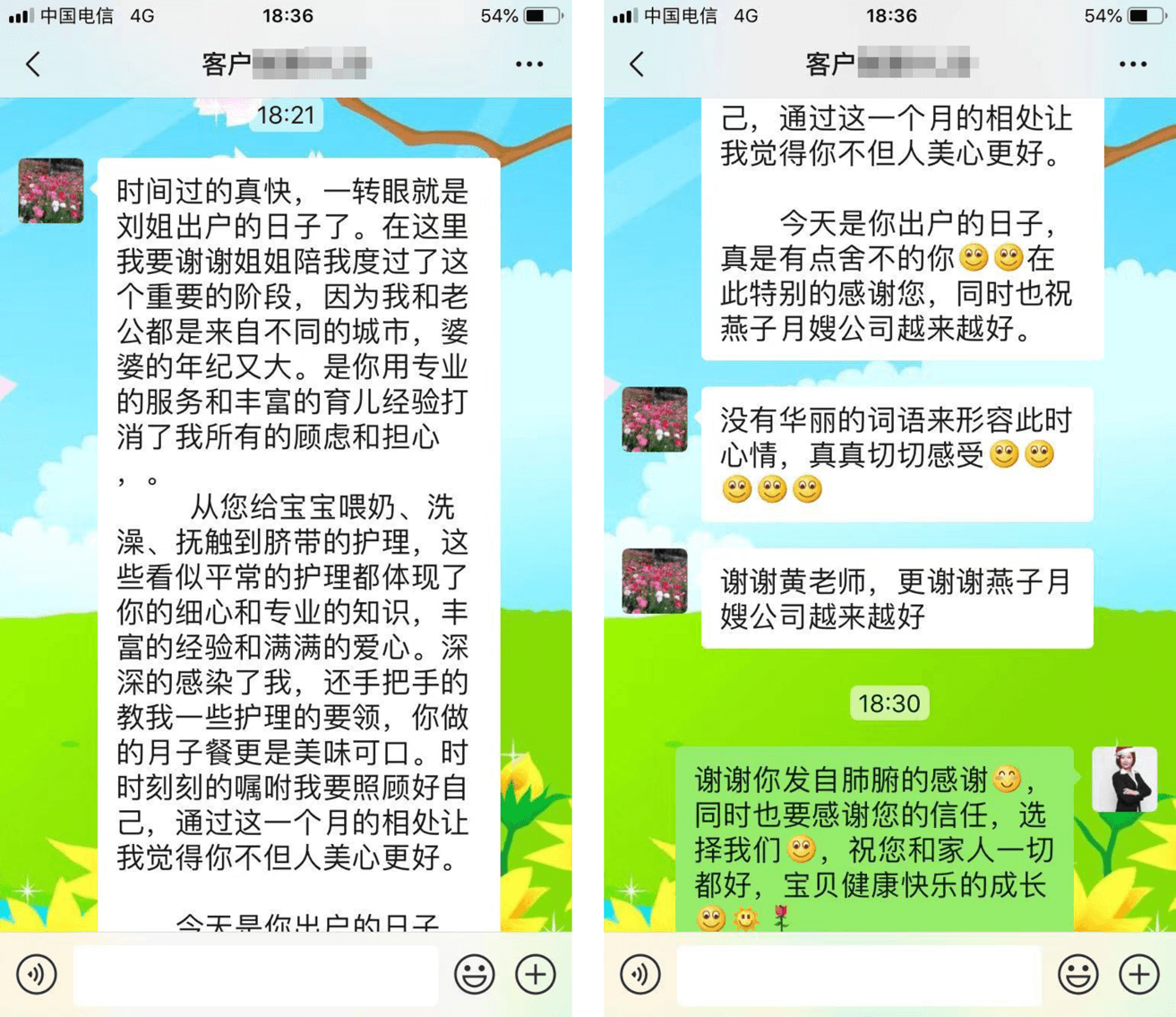 今天是你出戶的日子,真是有點舍不的你在此特別的感謝您,同時也祝燕子月嫂公司越來越好。