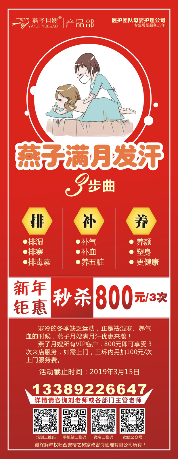 寒冷的冬天缺乏運動,正是祛濕寒、養氣血的最佳時機,燕子月嫂滿月汗優惠來襲!