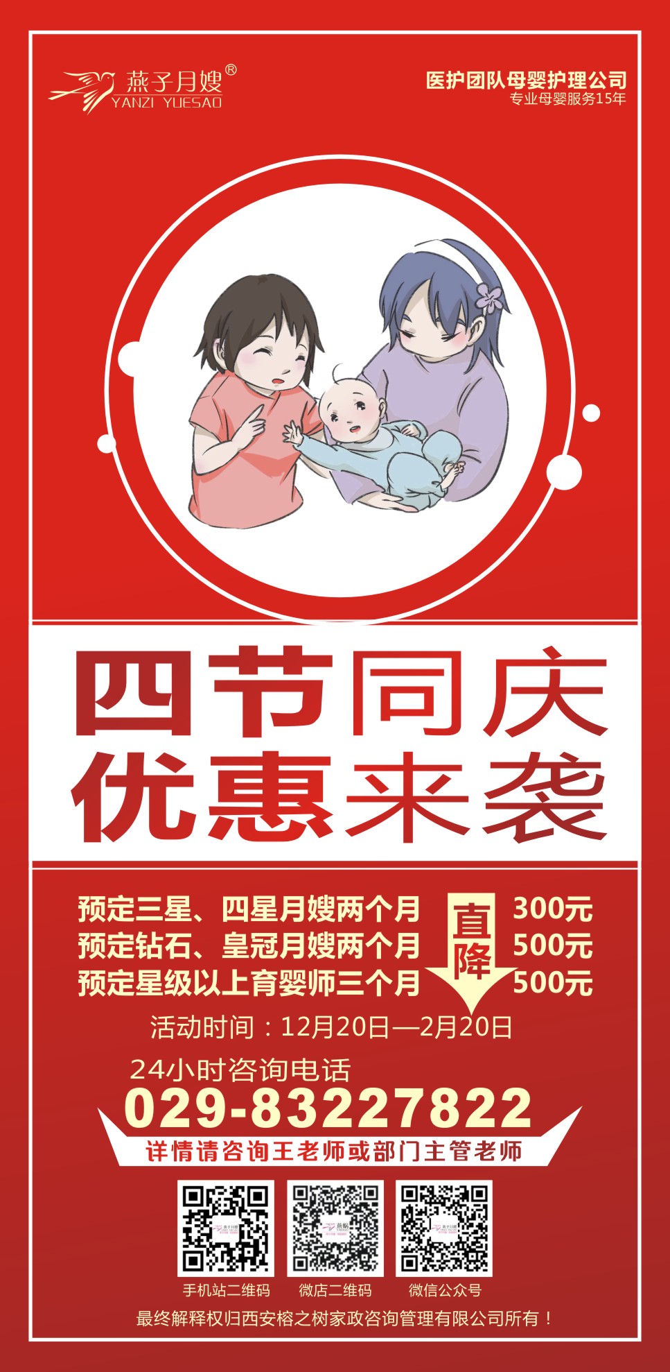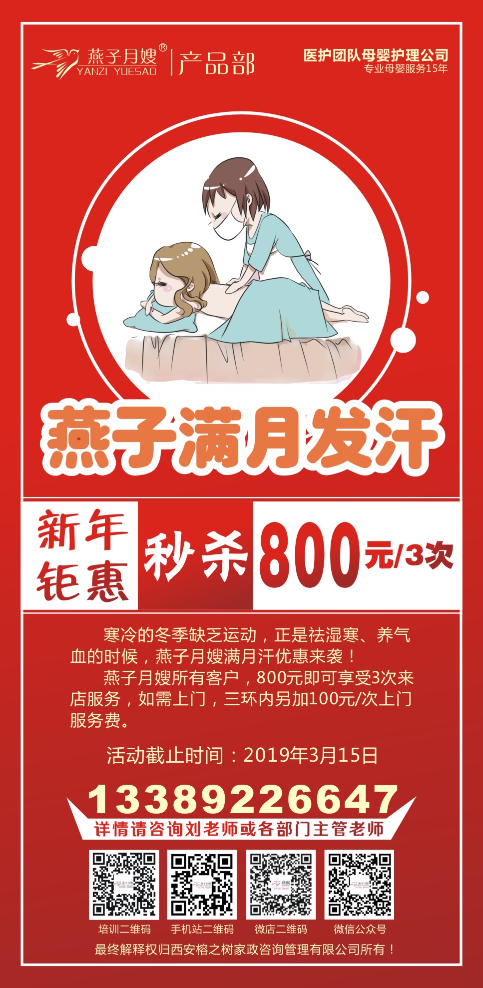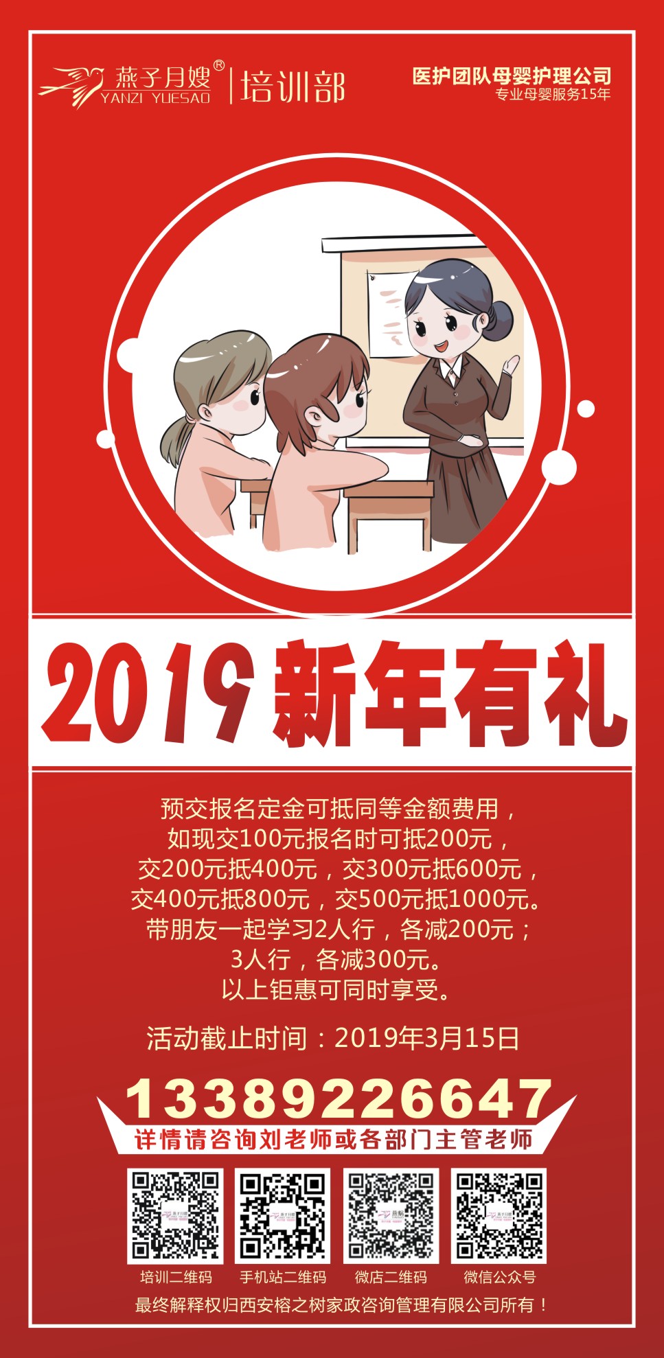為了回饋新老客戶長期以來對燕子月嫂的支持與信任,在2019年來臨之際,我們特推出以下優惠活動: