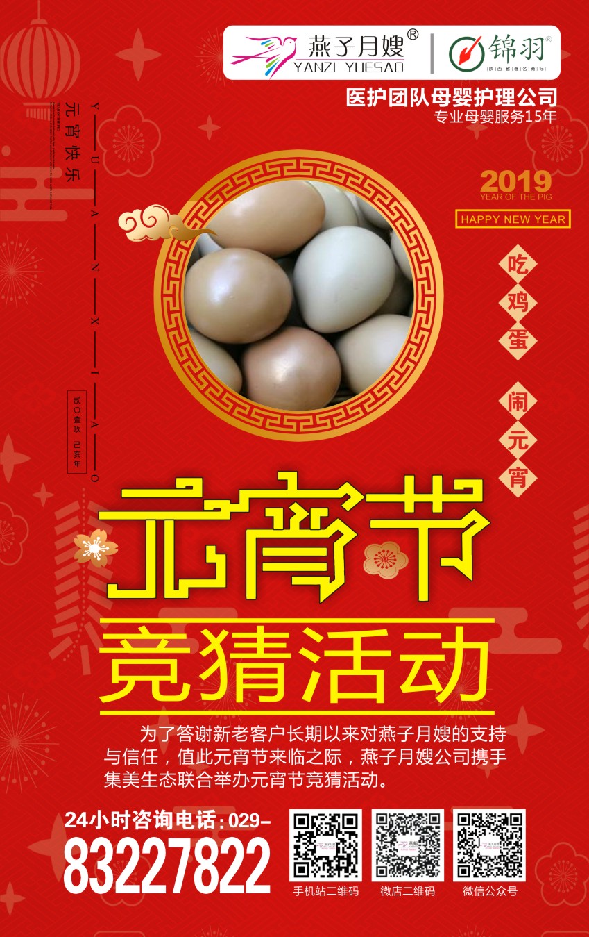 為了答謝新老客戶長期以來對燕子月嫂的支持與信任,值此元宵節來臨之際,燕子月嫂攜手集美生態聯合舉辦元宵節競猜活動。