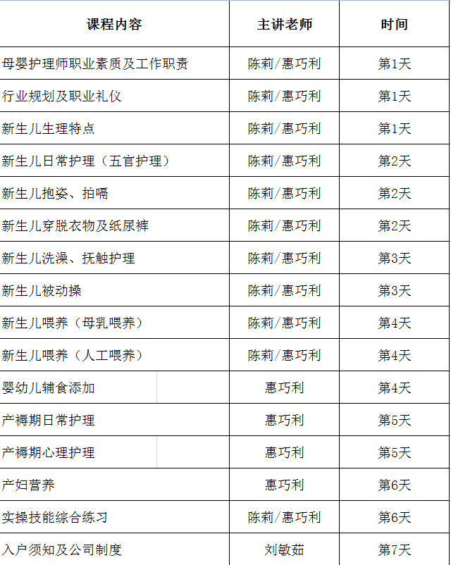 本次培訓課程由金牌講師惠老師和資深護理從業人員陳莉老師主講,學習內容見附表。