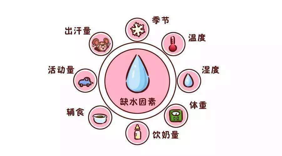 6~12月齡:每日需水量900mL,一多半來(lái)自奶類,其余來(lái)自輔食內(nèi)所含水分(如粥、面、小餛飩等)。