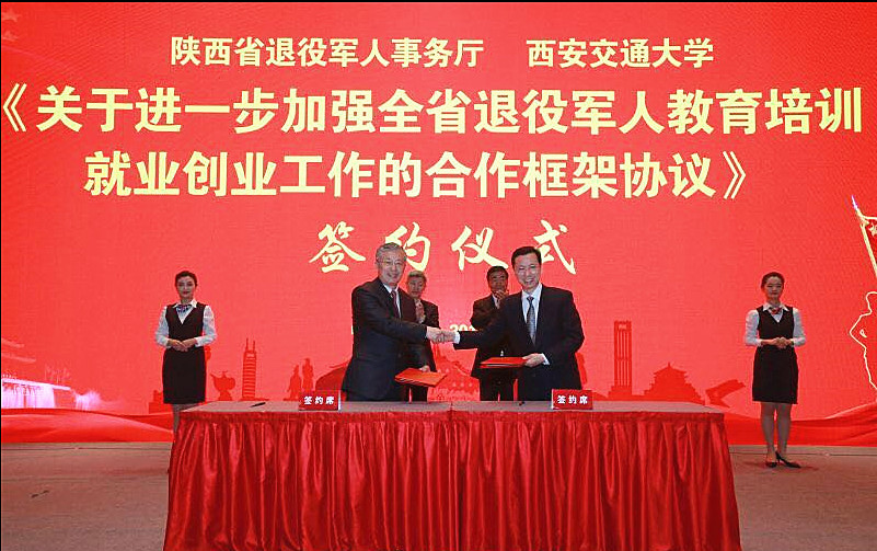 由陜西省退役軍人事務廳主辦,西安交通大學、西北工業大學、空軍軍醫大學等高校協辦的關于“進一步加強全省退役軍人教育培訓就業創業工作的合作協議”簽約儀式于2019年4月17日在陜西賓館會議廳舉辦。