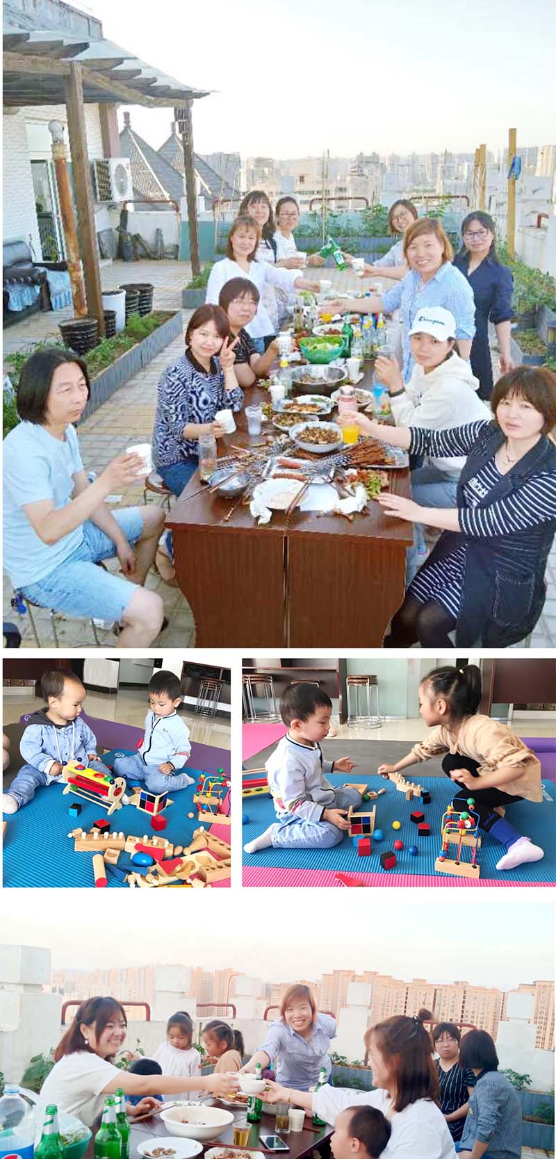 燕子月嫂母親節團建占盡”天時地利人和“,萬里晴空徐徐微風;綠意盎然的露臺視野開闊居高臨下;領導們親力親為精心烹制各種美食,還為小朋友們布置了多媒體育兒室。燕子家人歡聚在此,共同分享美味,聊聊工作的心得、育兒的經驗,孩子們的歡聲笑語把大家的心緊緊地鏈在了一起。