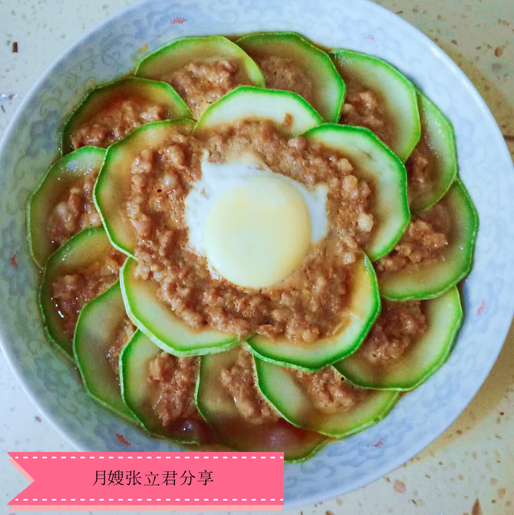 食材:肉末(牛肉、豬肉、雞肉、蝦肉)均可(根據個人口為選擇)、西葫蘆、雞蛋、鹽、料酒、生抽、生姜、蔥、淀粉。