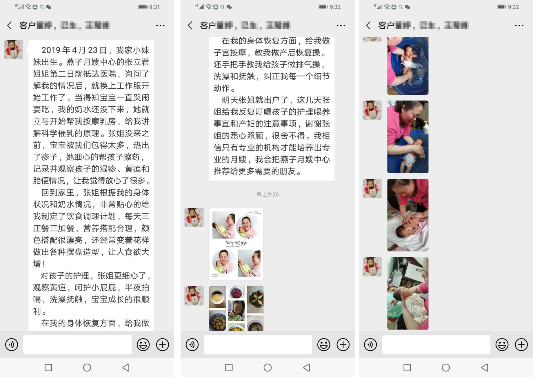 2019年4月23日,我家小妹妹出生。燕子月嫂中心的張立君姐姐第二日就抵達醫院,詢問了解我的情況后,就換上工作服開始工作了。當得知寶寶一直哭鬧要吃,我的奶水還沒下來,她就立馬開始幫我按摩乳房,給我講解科學催乳的原理。張姐沒來之前,寶寶被我們包得太多,熱出了疹子,她細心的幫孩子擦藥記錄并觀察孩子的濕疹、黃疸和胎便情況,讓我覺得放心了很多。回到家里,張姐根據我的身體狀況和奶水情況,非常貼心的給我制定了飲食調理計劃,每天三正餐三加餐,營養搭配合理,顏色搭配很漂亮,還經常變著花樣做出各種擺盤造型,讓人食欲大增! 對孩子的護理,張姐更細心了,觀察黃疸,呵護小屁屁,半夜拍嗝,洗澡撫觸,寶寶成長的很順利。在我的身體恢復方面,給我做子宮按摩,教我做產后恢復操。還手把手教我給孩子做排氣操,洗澡和撫觸,糾正我每一個細節動作。