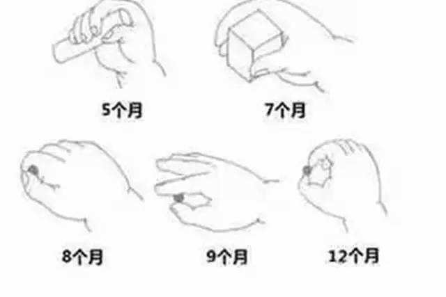 8~9月齡:拇指能與其他指相捏。
