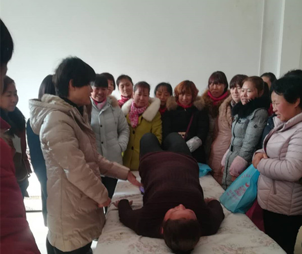 燕子學員親自上場,老師演示指導產后操做法,學員模仿練習,一對一指導。
