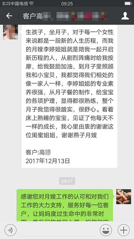 每一次接到寶媽發(fā)來的感謝信,燕子每一位老師都是欣慰并感動的。月嫂每一次入戶,老師們都是千叮嚀萬囑咐,交代好客戶的具體情況,到客戶家后,我們每天都會關(guān)注著寶寶的成長、寶媽的恢復(fù)情況、月嫂的狀態(tài)等等。只為給客戶提供專業(yè)的月嫂服務(wù)