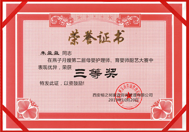 朱盈盈獲得第二屆“舌尖上的旅行”母嬰護理師/育嬰師廚藝大比拼三等獎