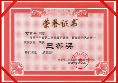 萬雪會獲得第二屆“舌尖上的旅行”母嬰護理師/育嬰師廚藝大比拼三等獎