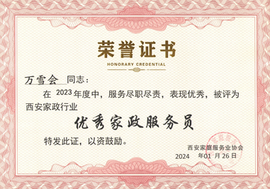 西安燕子月嫂萬雪會評為西安家政行業“優秀家政服務員”?