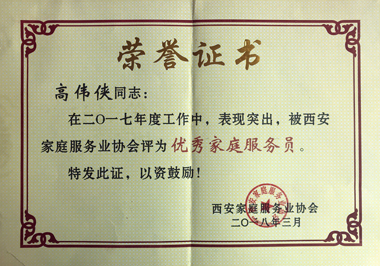 高偉俠榮獲家協(xié)“優(yōu)秀家庭服務(wù)員”稱號