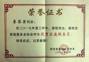 李答榮榮獲家協“優秀家庭服務員”稱號