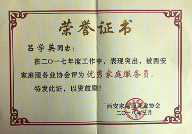 呂學英榮獲家協“優秀家庭服務員”稱號