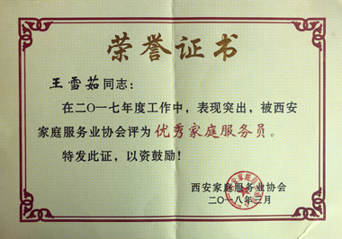 王雪茹榮獲家協(xié)“優(yōu)秀家庭服務(wù)員”稱號