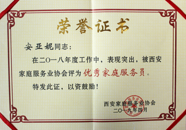 安亞妮榮獲家協(xié)“優(yōu)秀家庭服務(wù)員”稱(chēng)號(hào)