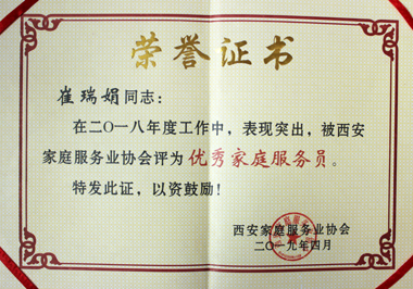 崔瑞娟榮獲家協“優秀家庭服務員”稱號