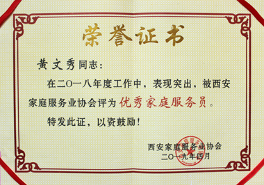 黃文秀榮獲家協(xié)“優(yōu)秀家庭服務(wù)員”稱號