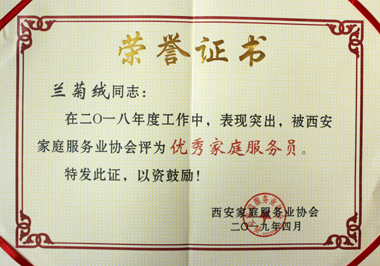 蘭菊絨榮獲家協“優秀家庭服務員”稱號